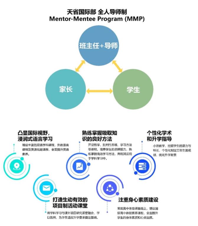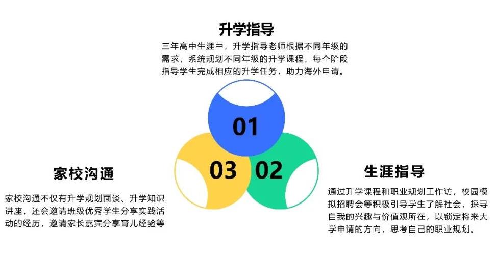 天省国际部为学生入读后提供专职升学指导老师,高中三年为每一个家庭提供专业的升学指导以及生涯指导课程和服务;积极与家长联动,定期举行线上线下的家校共育活动,帮助家长了解海外大学的申请要求,更好地配合升学指导老师完成学生的升学工作。