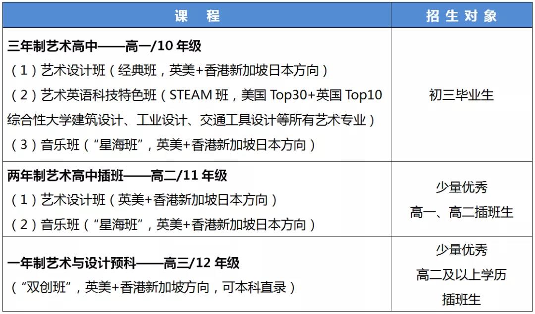 艺术设计班(经典班,高一/高二插班,双创班)