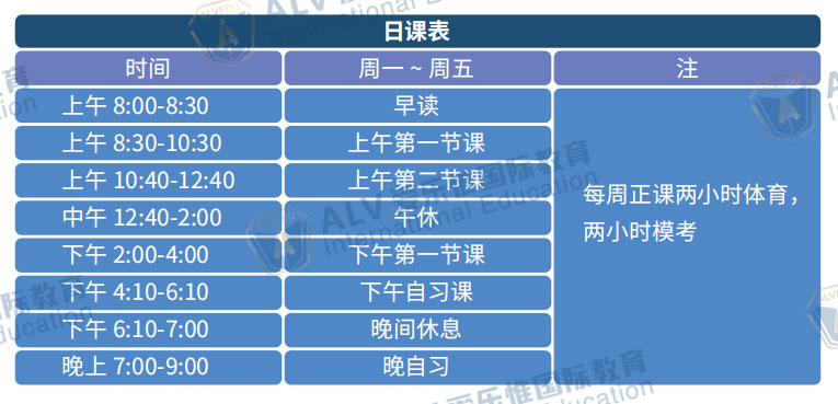 从早上8:00到晚上9:00,全天全程跟进。每周体育运动,劳逸结合,保障学生在最佳状态下学习。