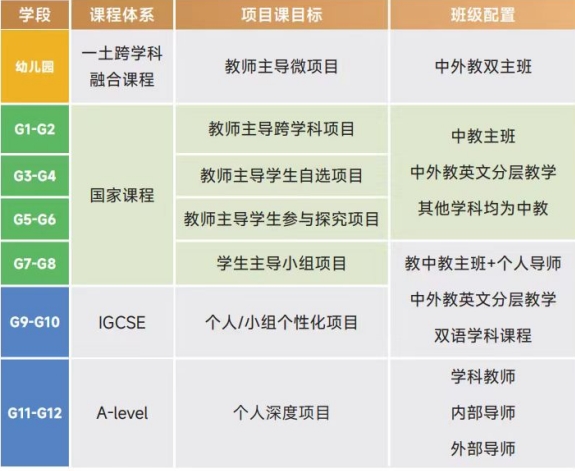 在落实义务教育课程标准的基础上,借鉴英美中学课程体系(Common Core 与IGCSE)的内容, 扎实基础的同时强调双语学习能力的培养,为学生在高中阶段进入不同课程体系深造做好知识与技能的准备。