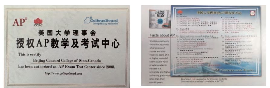 北京中加学校是国内第一所把国际AP课程引进高中教学的学校。由美国大学理事会AP考试中心认证,指定为AP课程考试中心。