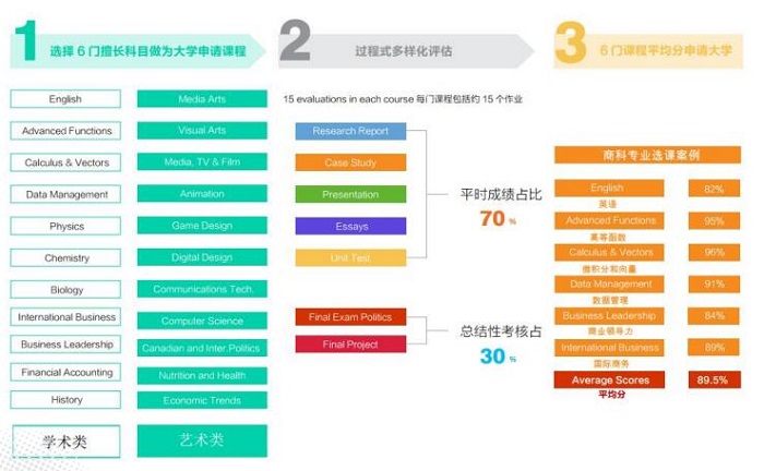 OSSD以其优质严格的教学管理在全世界具有极高的认可度,平时成绩,被加拿大、美国、英国、澳大利亚全部大学承认,是进入世界大学的通用文凭。