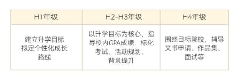 学生入学第一年, 升学规划导师团协同班主任、家长共同为学生建立升学档案,拟定其个性化成长路线图,包括标化考试计划制定、社团建议、比赛支持、学术项目策划、特长发挥等,每位学生都会匹配相应的升学规划老师,老师将从升学角度,结合学校活动部、学生处,班主任及学生家庭资源,全面地为学生制定升学建议方案,充分挖掘学生潜力、寻找亮点和独特性,帮助学生明确学习方向与大学目标,最终在学业、生活、人际交往等各方面取得成效。