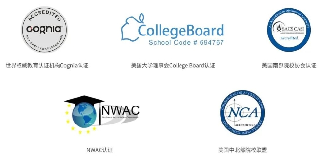 橘郡国际学校得多项国际知名认证,包括但不限于美国大学理事会College Board认证、世界权威教育认证机构Cognia认证等等,同时,橘郡美高课程也均在办学所在地教育局进行备案。