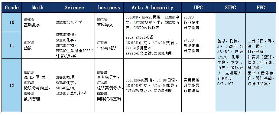 文凭体系 Secondary School Diploma Course:OSSD课程; IGCSE、A-Level(AQA)