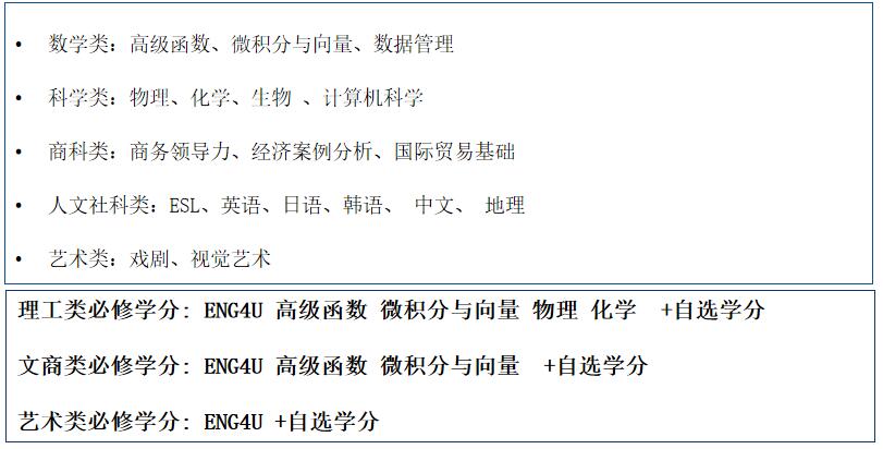(3)11-12年级根据大学目标专业方向选择:必修学分+自选学分
