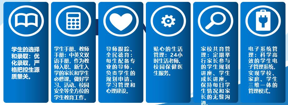 北京开放大学国际课程中心将以培养全人格教育作为中心思想,将学生的安全和健康成长放在首位,全面打造六维一体的管理模式,实现学生,家庭,学校立体交互相结合的管理网络。