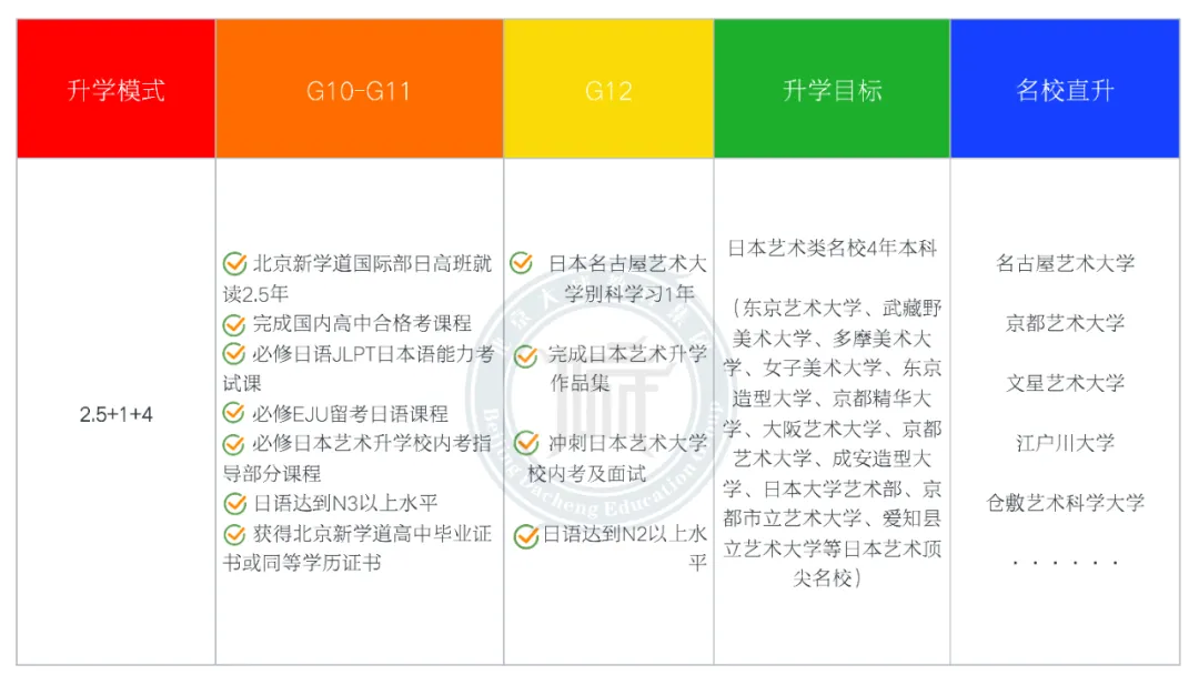 北京新学道日本艺术高中名校班,由我校国际部携手北京ACG国际艺术教育共同打造的艺术名校班,该班充分结合了中国高中的核心课程要求与日本艺术大学的升学标准,确保学生在掌握扎实的艺术基础知识的同时,也能满足日本艺术升学的严格要求。我们提供全方位、一体化的课程体系,包括艺术基础知识学习、造型能力提升、专业深入研究和作品集制作等关键环节,以及出愿考辅导等全方位支持。我们的目标是帮助每一位学生找到真正适合自己的专业方向,并提供从国内到日本本土的全程升学指导和服务。选择北京新学道日本艺术高中名校班,就是选择了一个充满创意与激情的学术之旅,我们期待与学生们共同开启这段精彩的艺术留学篇章。