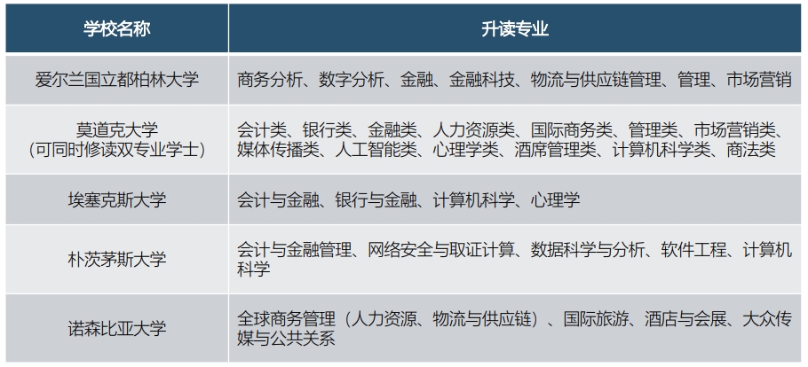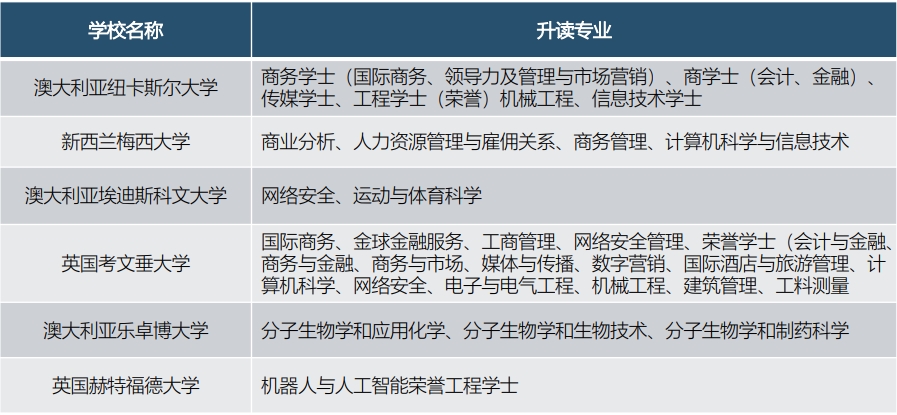 部分升读院校和专业