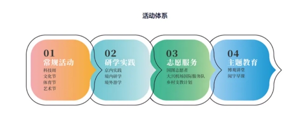 升学规划指导课程帮助学生理解教育选择及职业发展机会,并提升学术预备与学习环境适应能力。通过常春藤导师和升学规划导师学术提供的考试评估、教育选择、课外活动与素养发展等升学预备相关的知识技能,引导学生学会搜集升学选择的相关信息,理解学业规划与升学选择的关联性。