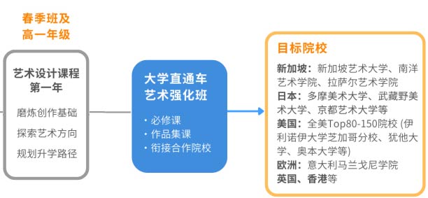 课程学习内容精炼,直击艺术升学的核心需求,以更友好的入学要求与费用结构,帮助学生高效步入新加坡高等艺术学府。此外,学生同样保有申请部分英美、欧洲、中国香港等地区的院校选择。