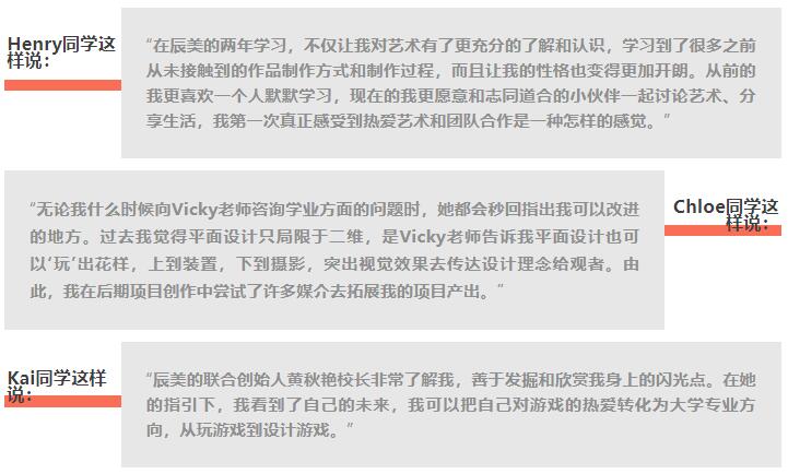成为卓越的学生,是辰美对学子们的第一个期望。辰美借鉴海外大学的教学方式,打造辰美独特的A-Level和BTEC FAD整合课程,通过项目式学习(PBL)、设计思维学习(DesignThinking)、STEAM教育、通感教育、跨专业学习(Cross-Discipline Learning),帮助学生进行人格塑造,培养对自我的认识和对社会的认知,学会结合艺术与科技,用艺术解决问题。通过修读辰美的基础课程,学生可以在学习西方创意思维的同时,发扬中国传统文化优势,发掘自身无限的可能性,建立深厚的专业基础和文化底蕴。