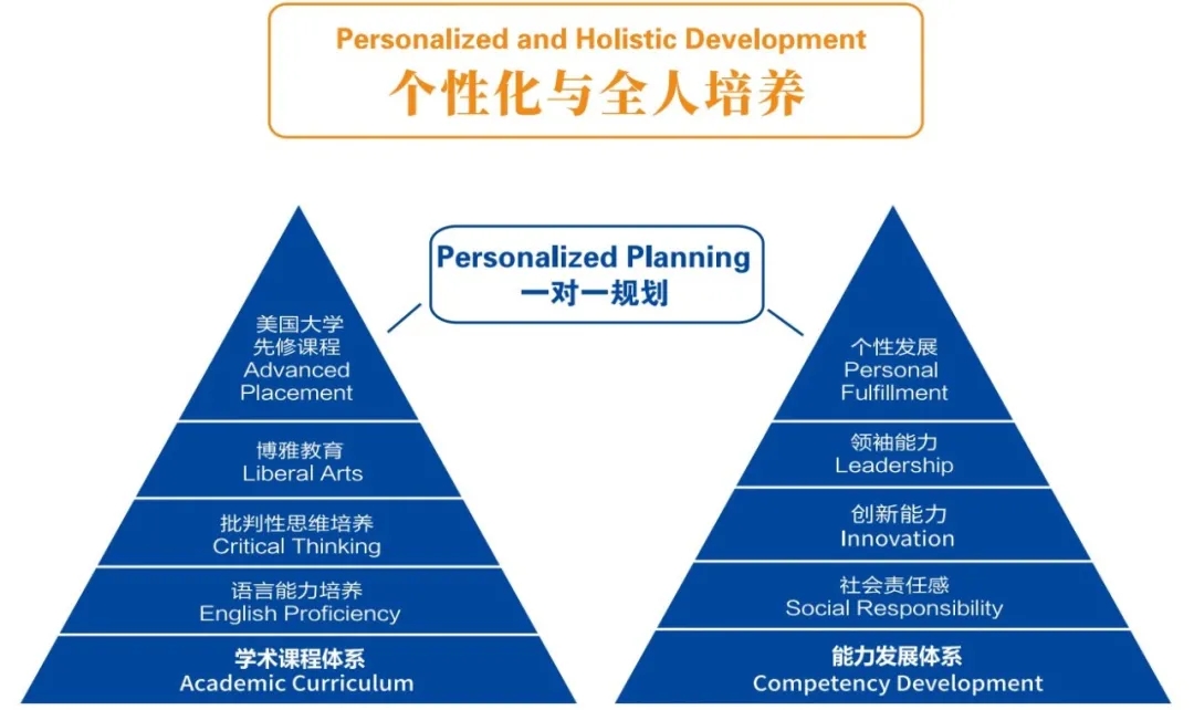 课程全面涵盖语言及人文素养模块、AP模块、素质课程模块和个性化学习模块,提前与美国名校的学习接轨。