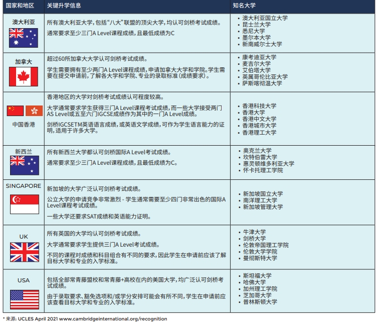 大学招生标准因课程而异,并且有可能发生变化。在美国和加拿大等国家,在剑桥考试中成绩优异的学生还可能获得课程学分或高级学位,缩短学习时间,节约留学费用。