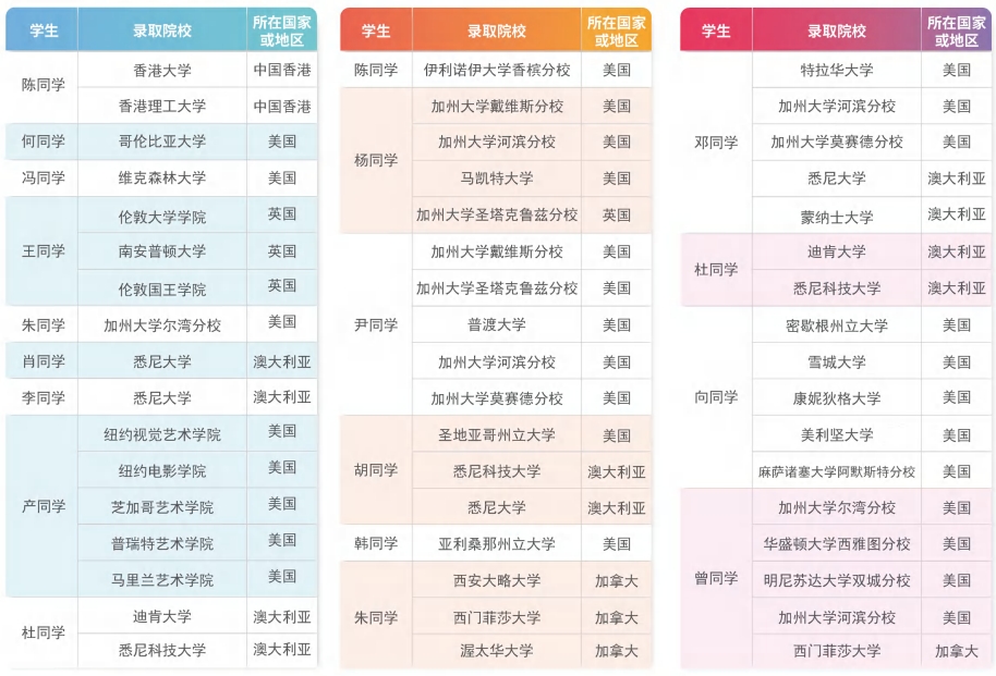 多方向升学:美国、英国、加拿大、澳大利亚、新加坡等国家及香港、澳门等地区