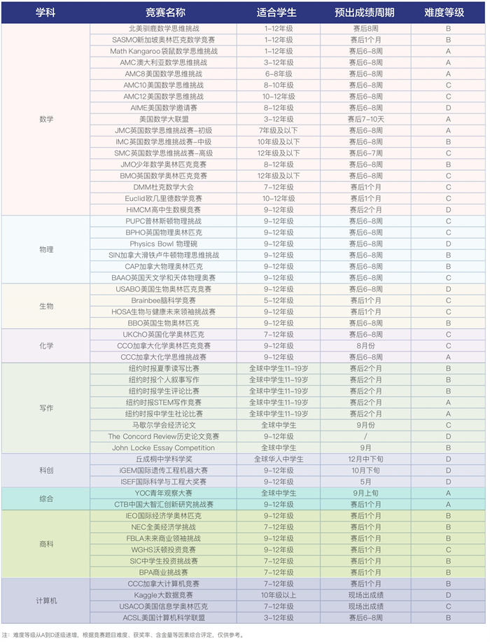 六、常见国际竞赛 & 辅导课程设置