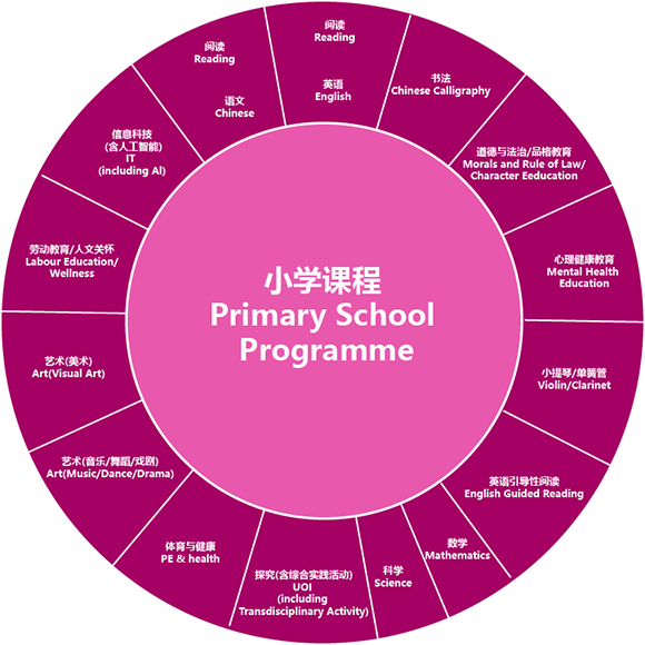 小学部的学科与六大超学科主题的学习相结合,围绕中心思想,开展探究式学习,通过开展各种探究活动融入各学科知识和技能的学习,激发孩子们与生俱来的好奇心,促使学生将广泛而均衡的书面课程、生活世界的实践和具有挑战性的项目有机结合起来,培养学生批判性思维的能力和创造能力。同时,探究课程也兼顾中国国家课程对于综合实践活动课程的要求,尤其是考察探究活动、设计制作活动方面的要求。
