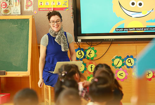 幼儿园的英语课程根据幼儿语言发展特点,以 Letterland Phonics 作为幼儿自然拼读学习的主要依托教材,并结合每日的Morning Talk以及一日生活中的各个环节,将英语学习与IB主题学习相接合,促进幼儿在真实的环境中提高英语技能。