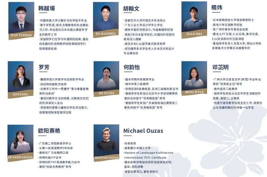 ▶专业化的师资团队,挑选责任心强、教学经验丰富、业务能力突出,具有港澳台或海外学历背景的教师任教,组成实力强大的常规教学及管理团队,把国际先进的教育教学理念传递给学生,着力培养具有国际视野、高尚情怀和跨文化交际能力的优秀人才。