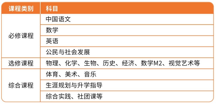 课程与国内高中课程高度吻合。
