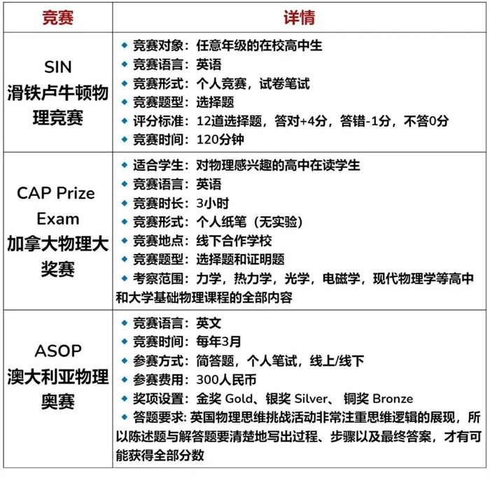 热门物理竞赛大多涉及高中物理知识,5月份可以尝试趣味性强的SIN竞赛。基础好的同学,3月份的BPhO中级挑战赛也是不错的选择。
