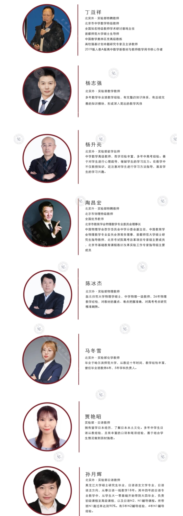 为满足学生的多元发展需求,北京市实验外国语学校·实验部开设专业日语能力提升课程及留考课程,课程涵盖基础日语、通用数学、理科综合,致力于培养学生日语综合应用能力及赴日后的良好适应能力,帮助学生以优秀成绩申请日本知名大学,成就充满无限可能的未来。