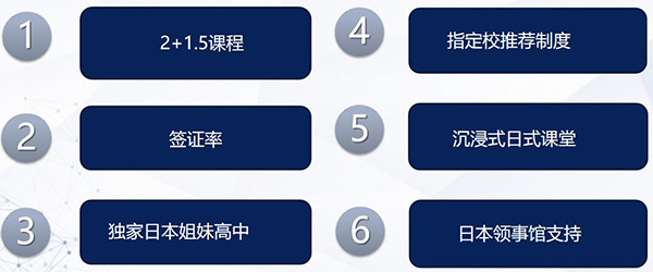 1.三高日本名校项目课程独家持有的指定校推荐入学。学生在完成3.5年全部课程后,根据综合评定, 以获得推荐指定校资格。