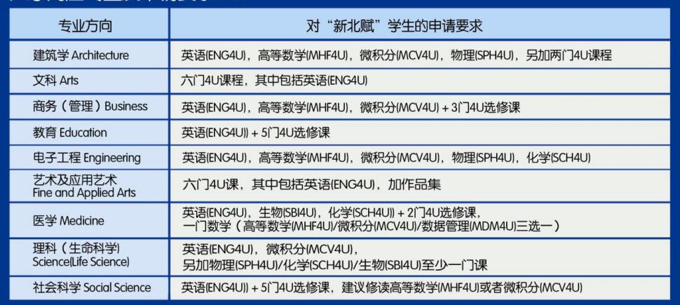 大学对应专业及申请要求