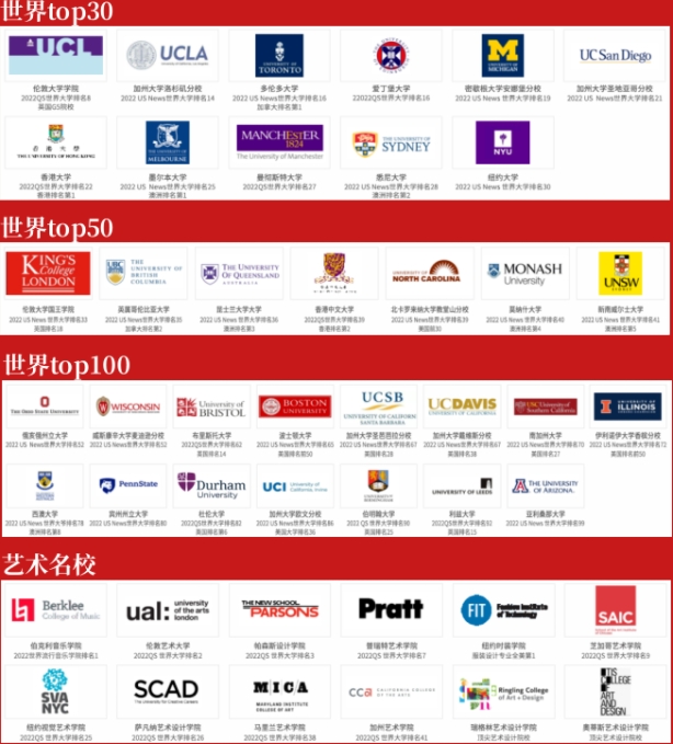 多年来,承翰国际毕业生100%都升入了世界名校他们分别被伦敦大学学院、爱丁堡大学、加州大学洛杉矶分校、密歇根大学安娜堡分校、南加州大学、曼彻斯特大学、北卡罗来纳大学教堂山分校、布兰迪斯大学、纽约大学、香港大学、多伦多大学、悉尼大学、伯克利音乐学院、芝加哥艺术学院、帕森斯艺术设计学院、伦敦艺术学院等世界名校录取。