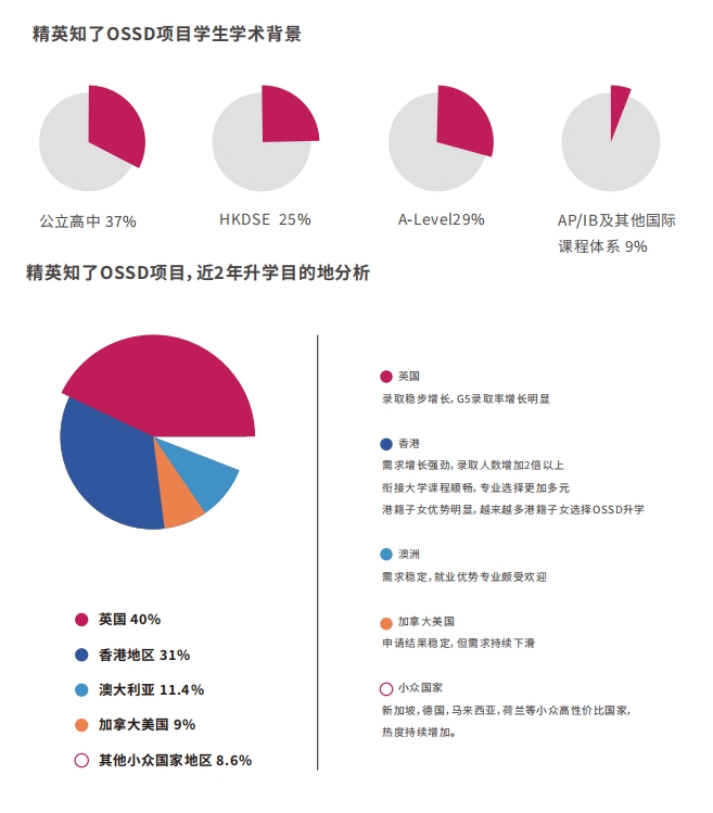 精英知了的升学指导团队,凭借多年的经验及资历,在罗斯德全球校区中,精英知了OSSD在英国G5,香港前5等地名校录取人数上遥遥领先。