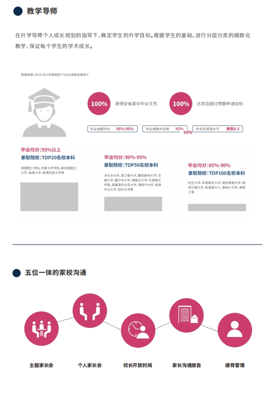 精英知了OSSD全日制课程中心是罗斯德全球高中的合作校区,提供1-3年0SS D全日制课程。精英知了OSSD全日制课程中心自2019成立以来,坚持0SSD差异化核心教学理念,将“以能力培养为导向”和“因材施教”的教育理念贯彻到教学和评估的全过程。根据每位学生特长、兴趣、学术基础,从学习内容、方式、评估、成长跟踪等各方面提供差异化、定制化的教学方案,充分发挥每位学生的最大潜能。仅2023年,精英知了OSSD全日制课程中心就有12名毕业生被英国G5超级精英大学录取,2名毕业生被香港大学录取。