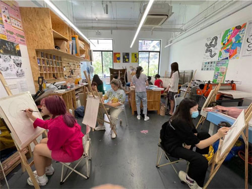 除了园外自己的社会活动外,园外 a-level 艺术中心还提供暑期海外教授集 训课程(近距离接触海外大学教授),周末的工作坊活动,优秀学员毕业展,丰 富的艺术社团活动,并经常组织看优秀设计师的展,联合蔚来,耐克,独立设计 师等举办跨界讲座及比赛等等