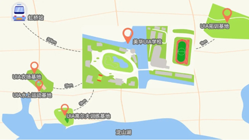 配套资源上:学校周边设有农场、户外拓训基地、水上运动场等,为学生兴趣选修和户外见学提供了多种选择性;学校同时云集了帆船俱乐部、高尔夫球场、马场等贵族运动训练基地,这些小众运动特长的培养完全不受限,学生可以任意选择自己最感兴趣的深入发展。这些完整多元的学习圈,让学生不断获得自我发展的内驱力,自主探究与实现,逐步成长为具有中国文化底蕴的综合人才。