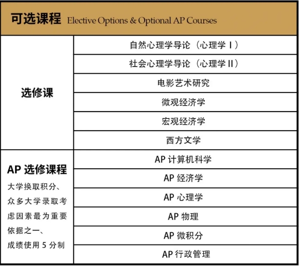 美华美高课程沿袭美国总校的教学课程体系大纲,融入中国特有的元素,使学生不出国门就能体验纯正美高教学体系。