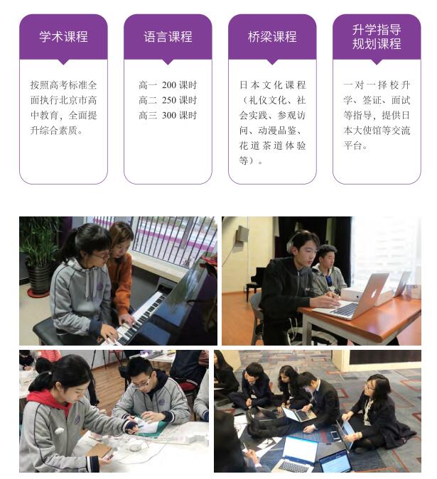 1.国内高中三年高考学术课程+日语学习及强化+日本文化课程;