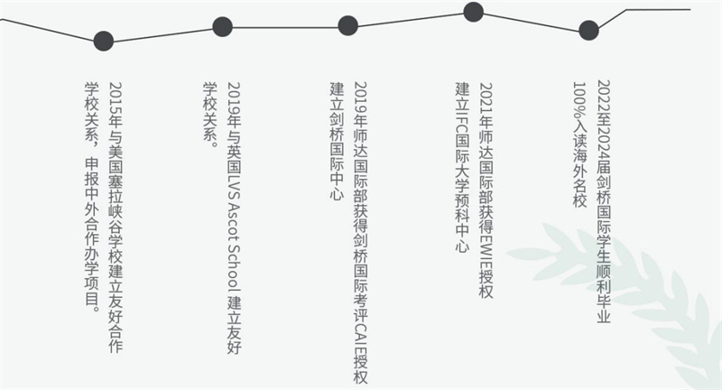 2019年5月,师达中学与英国LVSAscotSchool正式建立友好合作学校关系。师达国际部学习的学生将会获得LVSAscot学校的学分认定,学生完成选修的A-Level课程学习后,将会获得LVSAscot学校颁发的英国高中毕业证书。同时,学生有机会到英国LVSAscot学校交流学习。