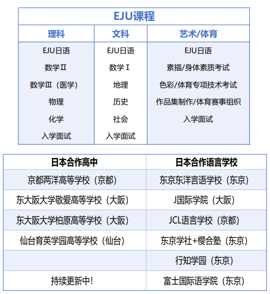 2.5+1:2.5年国内+1年日本高中(日语+Cognia认证高中GPA+可申请日本高中+EJU成绩申请)