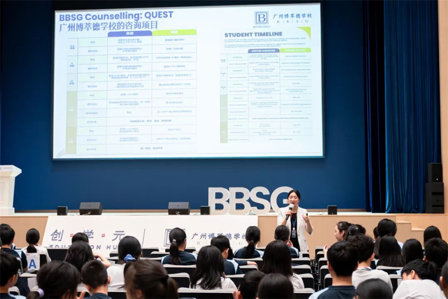 学涯与职涯规划宜早不宜迟。在“成长规划”(QUEST)项目下,学校的升学与职业指导团队以每月升学主题分享、一对一家庭会谈等方式,从六年级开始便为学生家庭提供指导与支持。