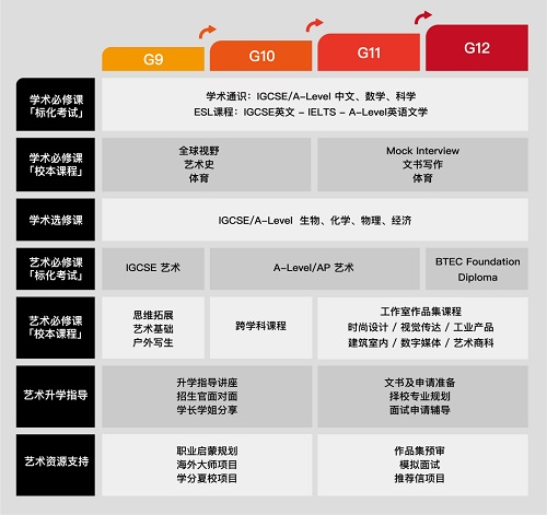 君诚国际艺术高中课程设置(G9-G12)