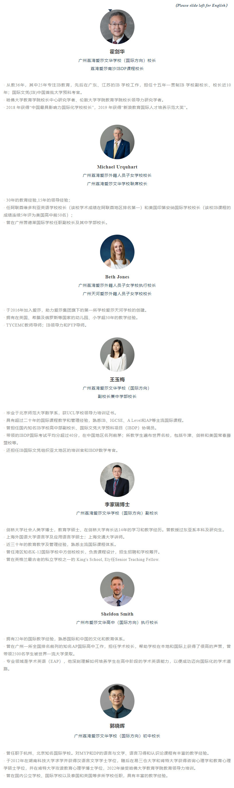 他们来自世界顶级学府,拥有雄厚一流的学术背景。拥有在澳大利亚、英国、法国、新加坡等多个国家知名国际学校多年的教学和管理经验。